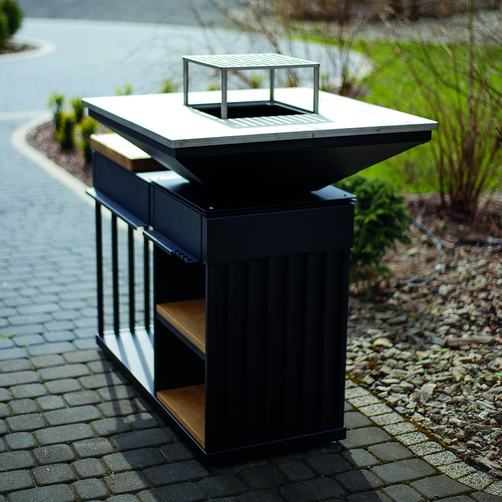 QUADRUM fire pit bbq is not only a modern garden grill, but also a fully equipped outdoor kitchen. It will also be perfect as a garden fire pit with grill - an effective source of heat on cool evenings, as well as a stylish and natural way to illuminate the garden. Comfortable operation Do you remember problems with cleaning the grill? With QUADRUM wood bbq you can forget about it. A specially profiled heating plate allows the dirt to flow down into the hearth. After use, you only need to clean the residue with a spatula and then wipe it off with a damp cloth. The steel construction is not only eye-catching, but also durable and weather-resistant. It does not require any impregnation, and the barbecue hearth can be used all year round! The new dimension of grilling The fire pit bbq QUADRUM will allow you to prepare excellent dishes in comfortable conditions. Equipped with a steel grate that enables traditional grilling. The plate around the wood stove allows not only grilling, but also cooking, frying, heating. It prevents food from burning and drying out. Food does not come into direct contact with smoke or fire. Preparing food on a grill fired with natural hardwood guarantees that the dishes are healthy and have a unique aroma. QUADRUM is not only an exclusive grill on which you can prepare healthy meals. It is an original space decoration that will give it a distinctive character. It is a way of spending time that guarantees that moments with your loved ones will become unforgettable. QUADRUM fire pit BBQ: - grilling, cooking, frying, heating - comprehensive garden kitchen, - perfectly prepared and healthy grilled dishes without contact with smoke and fire, - all in one - preparing meals, heat source, lighting up the space, - natural warmth from traditional wood, - resistant to external factors - use all year round, - steel grate and furnace, - functionality and professionalism - perfect for private and commercial spaces, - practical solutions - ease of use and cleaning, - modern style - unique decoration, - a way to spend time with family.