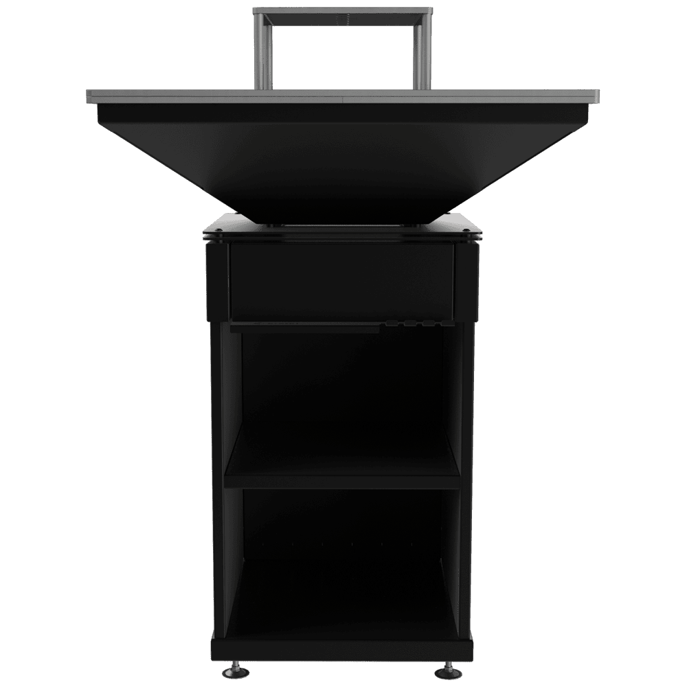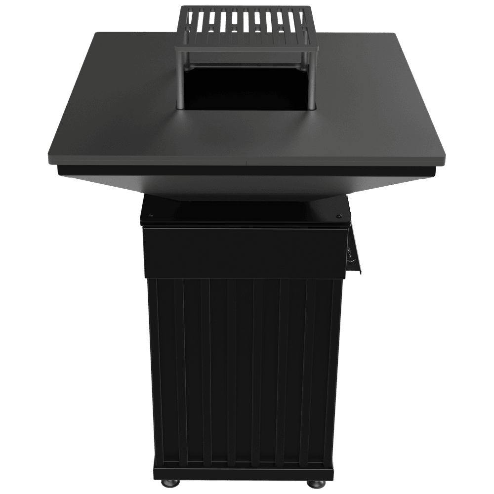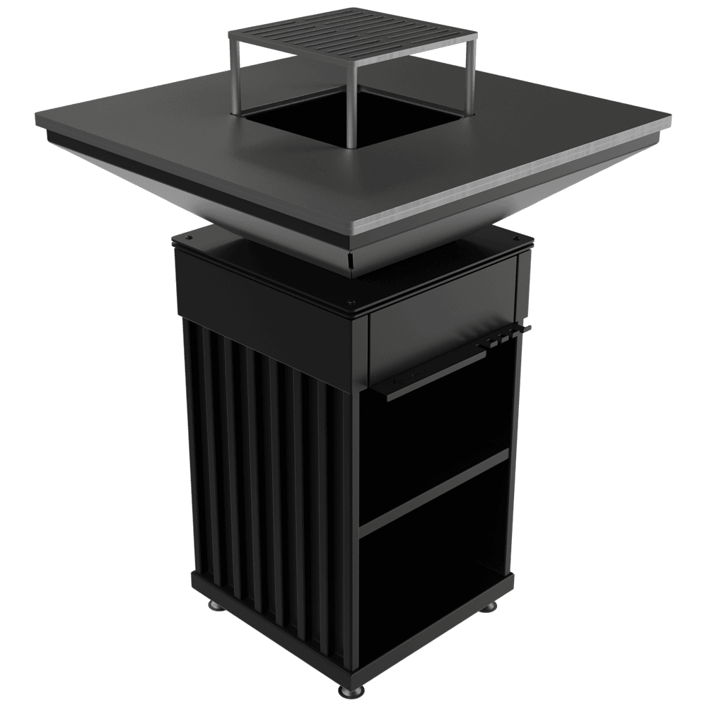 QUADRUM is an excellent quality, professional barbecue fire pit with a wood-burning hearth. It combines everything in one. Equipped with a steel grate, handy storage compartments for utensils and spices with a practical / roomy wood cavity.