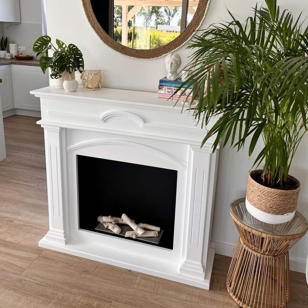 BENEFITS - Ethanol fireplace burns with bio-fuel filled into a container placed in the unit, ignited with a lighter and you can immediately enjoy the fire. When burning, it raises the temperature in the room by about 2-3 degrees what makes it ideal for colder evenings. Smokeless&Ventless- when burning, it does not produce smoke or harmful substances, only water vapour and carbon dioxide in the small quantities we exhale ourselves, so it is completely environmentally friendly. Portal model, without folding. Durability for years; made of high quality steel and Medium Density Fibreboard Painted with a specially selected durable paint, the blend of which gives resistance to high temperatures. Smooth finish with uniform texture, allows for easy use and maintenance. One line of fire without gaps - optically increases the size of the fire when burning. TÜV Rheinnland Poland safety certificate. Equipped with a safety bio container to prevent fuel leakage. Capacity of bio-insert 0,75 l . Can be extinguished at any time; supplied with extinguishing cap Space for placing decorative elements, e.g. stones, crystals or wood.