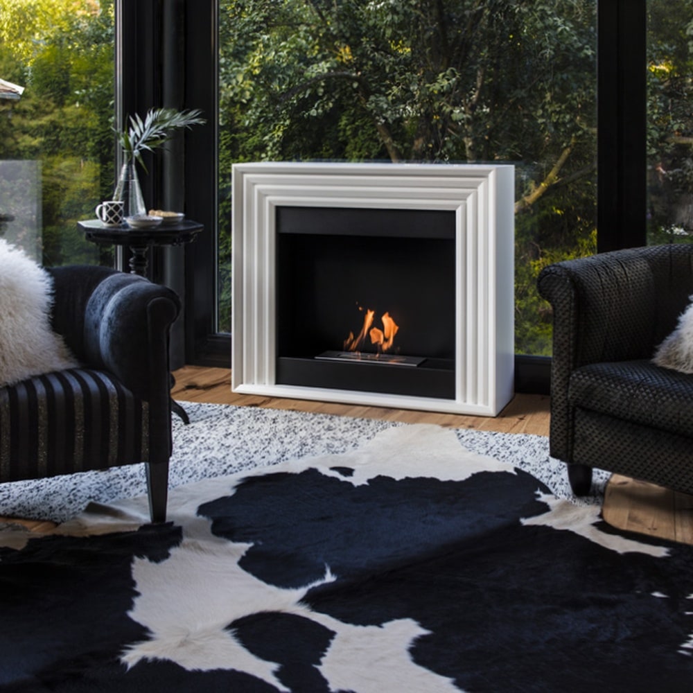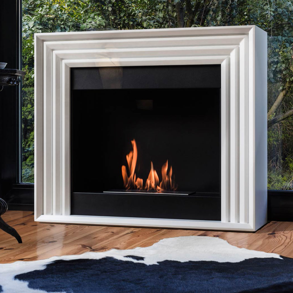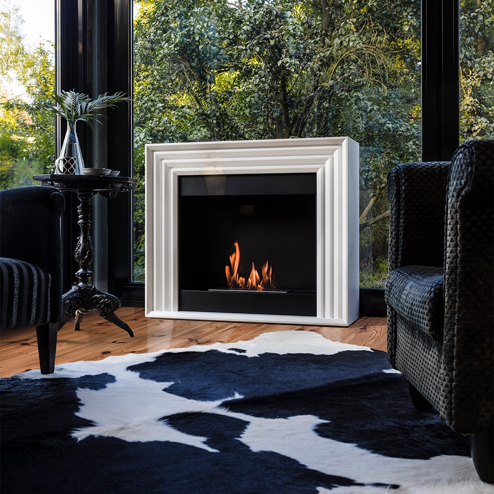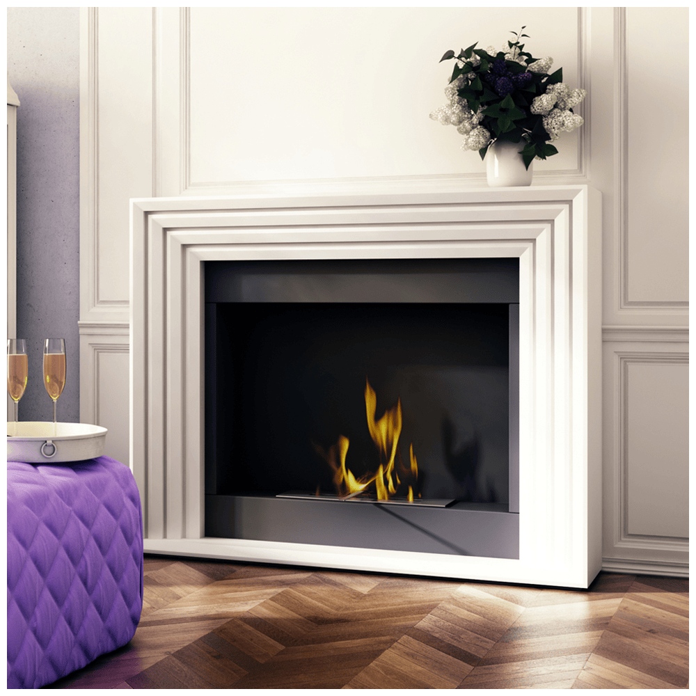 The simple, elegant shapes and the material of the Planet portal bio-fireplace make it perfectly reminiscent of a traditional fireplace. Planet has been created in a geometric style, with smooth riffles that will go well with glam or loft interiors. The simple shape with the addition of lines is a great addition in any home. BENEFITS Ethanol fireplace burns with bio-fuel filled into a container placed in the unit, ignited with a lighter and you can immediately enjoy the fire. When burning, it raises the temperature in the room by about 2-3 degrees what makes it ideal for colder evenings. Smokeless&Ventless- when burning, it does not produce smoke or harmful substances, only water vapour and carbon dioxide in the small quantities we exhale ourselves, so it is completely environmentally friendly. Portal model, without folding. Durability for years; made of high quality steel and Medium Density Fibreboard Painted with a specially selected durable paint, the blend of which gives resistance to high temperatures. Smooth finish with uniform texture, allows for easy use and maintenance. One line of fire without gaps - optically increases the size of the fire when burning. TÜV Rheinnland Poland safety certificate. Equipped with a safety bio container to prevent fuel leakage. Capacity of bio-insert 0,75 l . Can be extinguished at any time; supplied with extinguishing cap Space for placing decorative elements, e.g. stones, crystals or wood. SET INCLUDES Ethanol fireplace Planet Flame height adjustment bio container Steel flame extinguisher. Owner manual NATURAL HEAT The ethanol fireplace raises the temperature up to several degrees Celsius, depending on the height of the flame and the size of the interior. The heat generated is 100% given off to the room so that the ethanol fireplace can be used as an alternative source of heating while burning. When burning, it gives off heat to the room with a power that can be compared to a small heater. The Planet biofuel fireplace does not require a flue, as no toxic substances are produced by burning bioethanol. CONVENIENT USE The Planet ethanol fireplace does not need to be assembled. Simply set it up in the desired location, pour in the biofuel to the level marked on the container. It is possible to adjust and extinguish the flame at any time. NO ASSEMBLY REQUIRED Planet is a portal bio-fireplace that is shipped complete. It does not need to be assembled. Just set it up in the desired place in the room and use it immediately. A portal bio-fireplace does not require any additional elements such as pipes or grilles to be connected. After unpacking, you can use it right away and enjoy the elegant bio-fireplace. Simply pour in the biofuel and enjoy the fire. QUALITY ASSURED The Planet bio-fireplace is made of high-quality steel and strong MDF panels painted with heat-resistant paint so as not to cause discolouration when burning. You get the assurance that its colour and quality will last for years. BET ON SAFETY The production process of ethanol fireplaces is monitored by TÜV Rheinland Poland - the ethanol fireplace has a German TÜV safety certificate. The TÜV-certified container has an additional special chamber which prevents fuel from spilling due to accidental overfilling. It also has a maximum fuel level indicator. An absorbent insert placed in the centre of the container reduces fuel consumption and prevents spilling of the biofuel as a result of tilting the appliance. IDEAL FOR AROMATHERAPY You can use aromatherapy in the Planet ethanol fireplace. Aromatherapy will fill the room with a beautiful fragrance - just pour a few drops into the container, place it close to the flame. Under the influence of the temperature, the oil begins to emit a fragrance. The oils have a positive effect on our mood and additionally moisten the air in the room. You will find a wide range of oils and bowls in the accessories for ethanol fireplaces in our shop. ELEGANT DECORATIVE ACCESSORIES The Planet has space for beautiful decorative accessories. You can arrange them around the hearth. Our wide range of decorative elements includes stones in different colours, crystals, bark, ceramic wood and many other interesting decorations that will add variety to your interior. BIOFUEL FOR A ETHANOL FIREPLACE In our shop you will find a wide range of high-quality biofuel for fireplaces. The fuel can be either odourless or with a beautiful fragrance that fills the room while burning. Our BIO-DECO biofuel is bioethanol which is designed to be burned in a ethanol fireplace. It is poured into a container. During combustion, it burns to the end. The next dose should be topped up once the