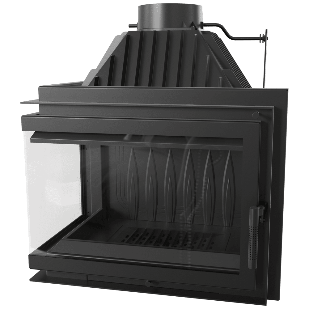 MODERN DESIGN - This is a corner fireplace insert with a BS door (combination glass). Thanks to this solution you can enjoy the fire from two sides in two rooms at the same time. Ideal for connecting rooms. The glass is finished with an elegant steel frame. The door of the insert has a modern handle. Its special perforated structure causes natural cooling. A convenient handle guarantees comfortable opening of the fireplace. The cast iron finish of the combustion chamber is black.