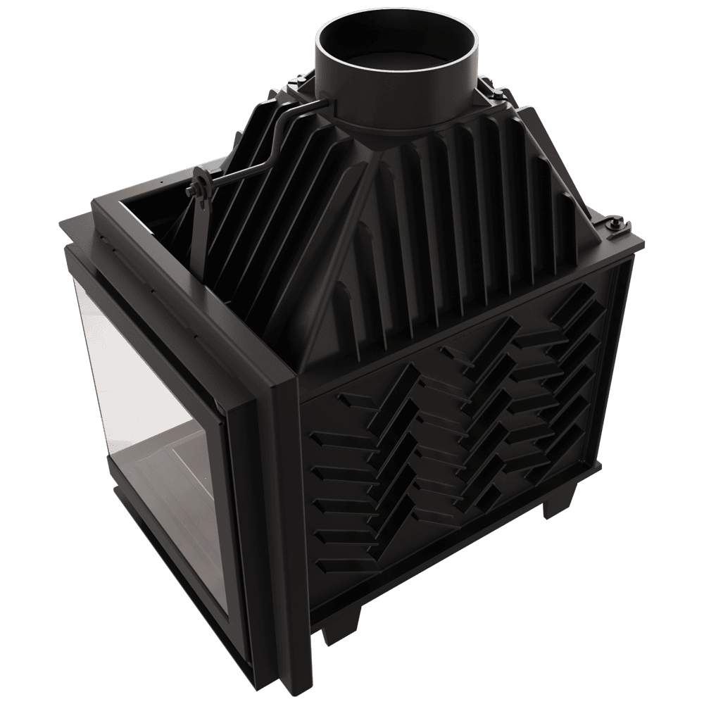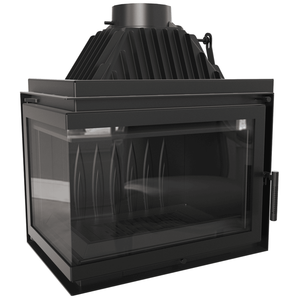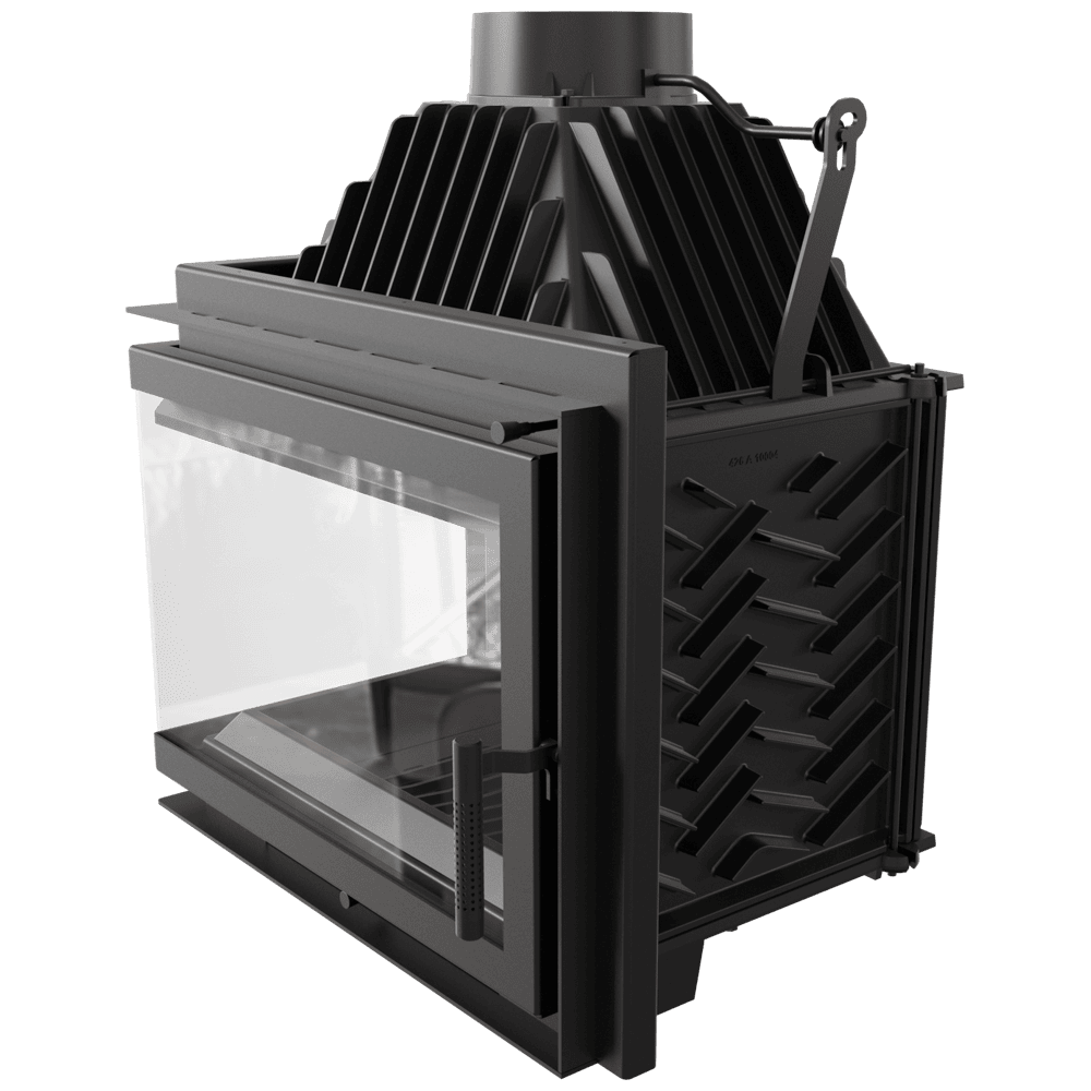 MODERN DESIGN - This is a corner fireplace insert with a BS door (combination glass). Thanks to this solution you can enjoy the fire from two sides in two rooms at the same time. Ideal for connecting rooms. The glass is finished with an elegant steel frame. The door of the insert has a modern handle. Its special perforated structure causes natural cooling. A convenient handle guarantees comfortable opening of the fireplace. The cast iron finish of the combustion chamber is black.