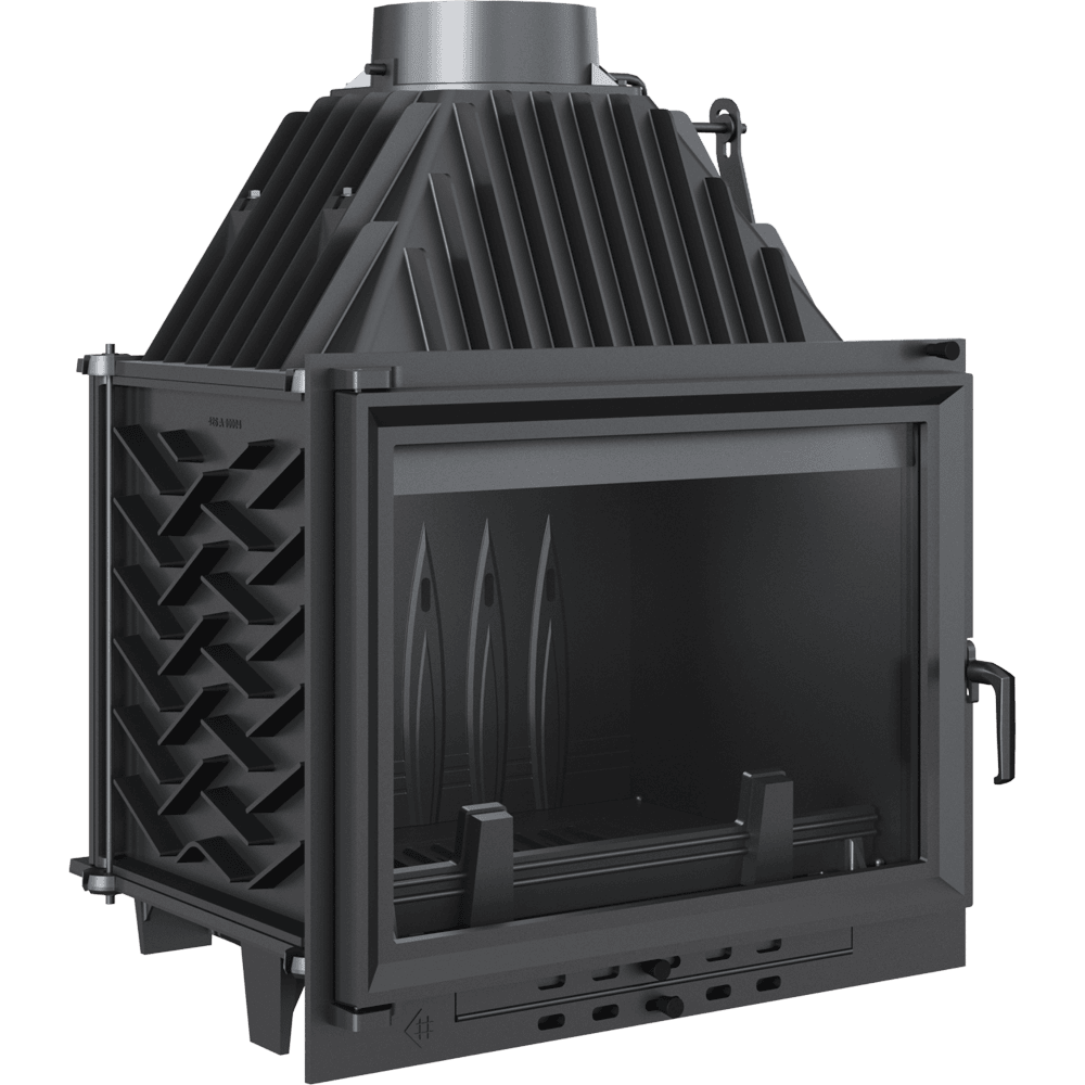 MAXIMUM ENERGY USE - Burning of fuel particles is accomplished due to the equipped deflector which extends the exhaust path. This process also increases the efficiency of combustion and guarantees a better use of energy and at the same time minimizes the emission of harmful substances into the atmosphere. The device has a triple combustion chamber venting system, therefore the wood burning process in the insert is ecological and most importantly economical. The supply of primary air to the insert is performed from the outside due to the built-in air inlet (in size of 125 mm). The air intake is located in the bottom part of the insert. Secondary air is supplied by the holes in the rear wall of the furnace, which creates an afterburning system. The system is responsible for the burning of the gases and the reduction of harmful substances emissions to the environment. It improves the efficiency of the fireplace, what have a direct influence on very low CO emission. The device is equipped with a clean glass system - thanks to the so-called air curtain airflow is spread evenly, the glass is sweeped and soot settling is reduced to minimum.This allows you to maintain an effective and clean look of the glass for a long time.