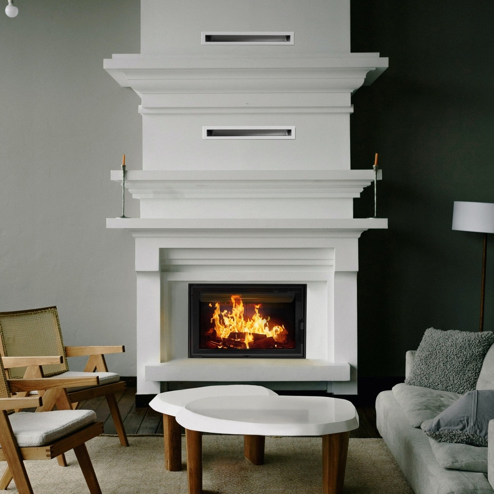 MODERN DESIGN - Decorative, heat-resistant glass that can withstand temperatures up to 660°C. It gives a fireplace a modern and elegant look, visually enlarges the front of the insert. An elegant and comfortable handle.