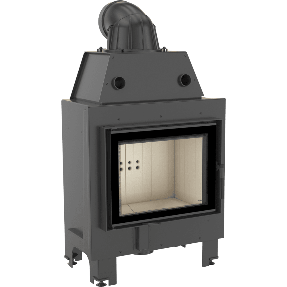 MAXIMUM USE OF ENERGY - Made of high quality steel resistant to very high temperatures. Efficient burning process & maintaining of temperature to keep the warmth for longer thanks to lining of combustion chamber with TERMOTEC - heat accumulating material which raises the temperature in the combustion chamber. High flue and smoke tube which are transversely located - increases the area of heat echange between the insert and the surrounding. Reducing the temperature of the gas exhaust helps to increase the efficiency of the device. Fireplace`s doors resistant to tensions and stable thanks to the use of closed profile. Door seals designed in profiled canal what guarantees proper adherence and protects against ewentual falling out while operating. Combustion of fuel particles thanks to deflector, which extends the exhaust gas path. Air supplied from outside only thanks to biult-in an external air inlet fi 125mm. Air adjustment with just one regulator which prevents from improper usage. Triple air system of combustion chamber: primary air - directed to combustion plate; secondary air supplied by the holes located in the back wall. Additionally, the system of air clean glass has been applied (curtain air).