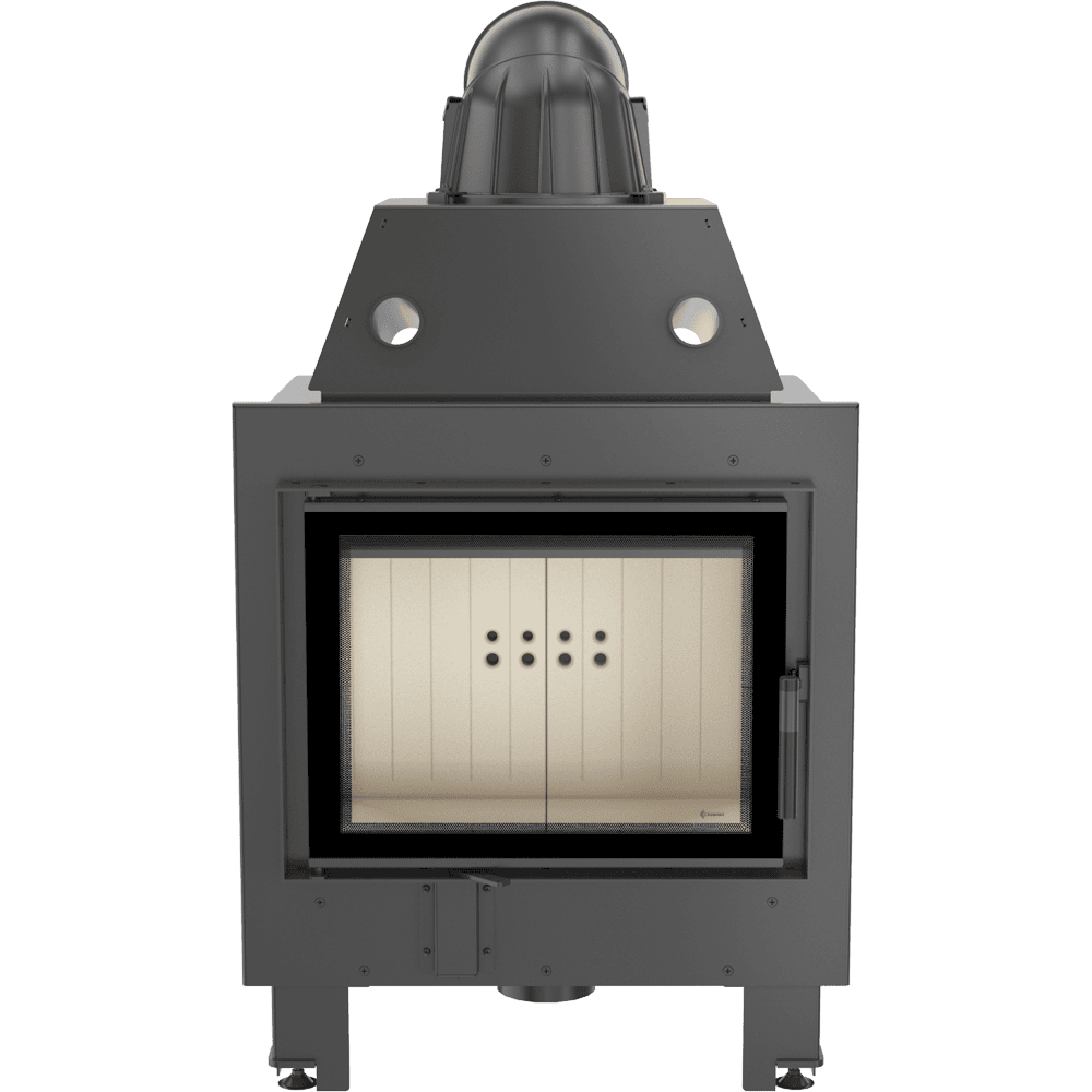 MODERN DESIGN - A fireplace insert with two panes compiled with each other at angles (without brackets). Decorative, heat-resistant glass that can withstand temperatures up to 660°C. It gives a fireplace a modern and elegant look, visually enlarges the front of the insert. Doors are equipped with modern handle.