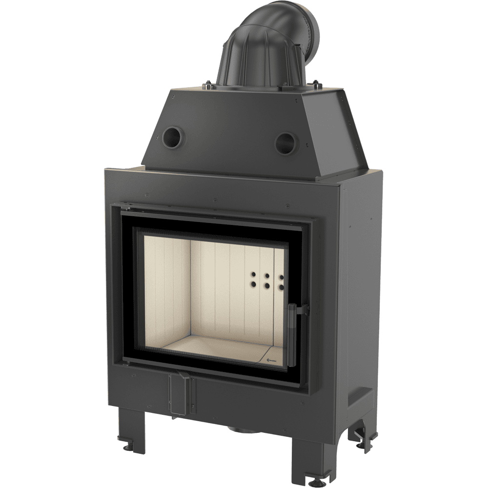 MAXIMUM USE OF ENERGY - Made of high quality steel resistant to very high temperatures. Efficient burning process & maintaining of temperature to keep the warmth for longer thanks to lining of combustion chamber with TERMOTEC - heat accumulating material which raises the temperature in the combustion chamber. High flue and smoke tube which are transversely located - increases the area of heat echange between the insert and the surrounding. Reducing the temperature of the gas exhaust helps to increase the efficiency of the device. Fireplace`s doors resistant to tensions and stable thanks to the use of closed profile. Door seals designed in profiled canal what guarantees proper adherence and protects against ewentual falling out while operating. Combustion of fuel particles thanks to deflector, which extends the exhaust gas path. Air supplied from outside only thanks to biult-in an external air inlet fi 125mm. Air adjustment with just one regulator which prevents from improper usage. Triple air system of combustion chamber: primary air - directed to combustion plate; secondary air supplied by the holes located in the back wall. Additionally, the system of air clean glass has been applied (curtain air).