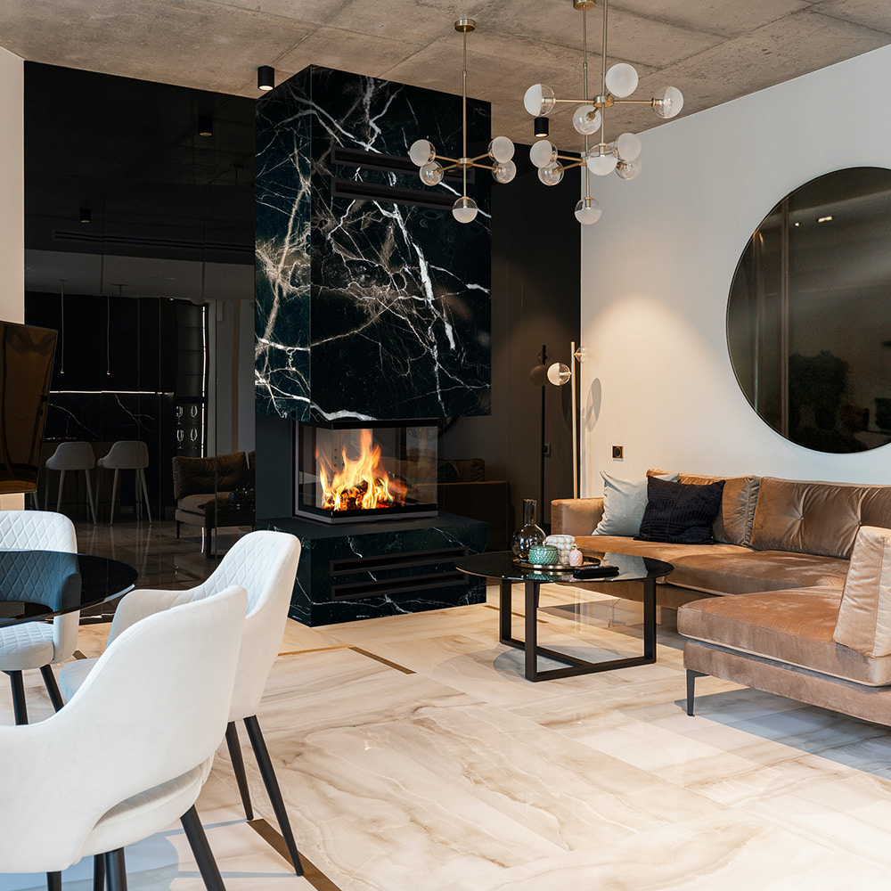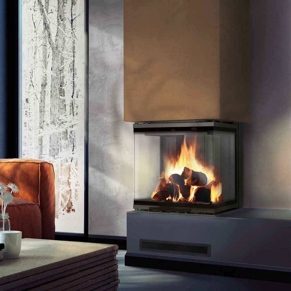 MODERN DESIGN - Three-side glazing of fireplace guarantees maximum vision of the fire. Comfortable and quiet lift-up mechanism simplifies cleaning and service of the insert. Decorative, heat-resistant glass that can withstand temperatures up to 660°C. It gives a fireplace a modern and elegant look, visually enlarges the front of the
