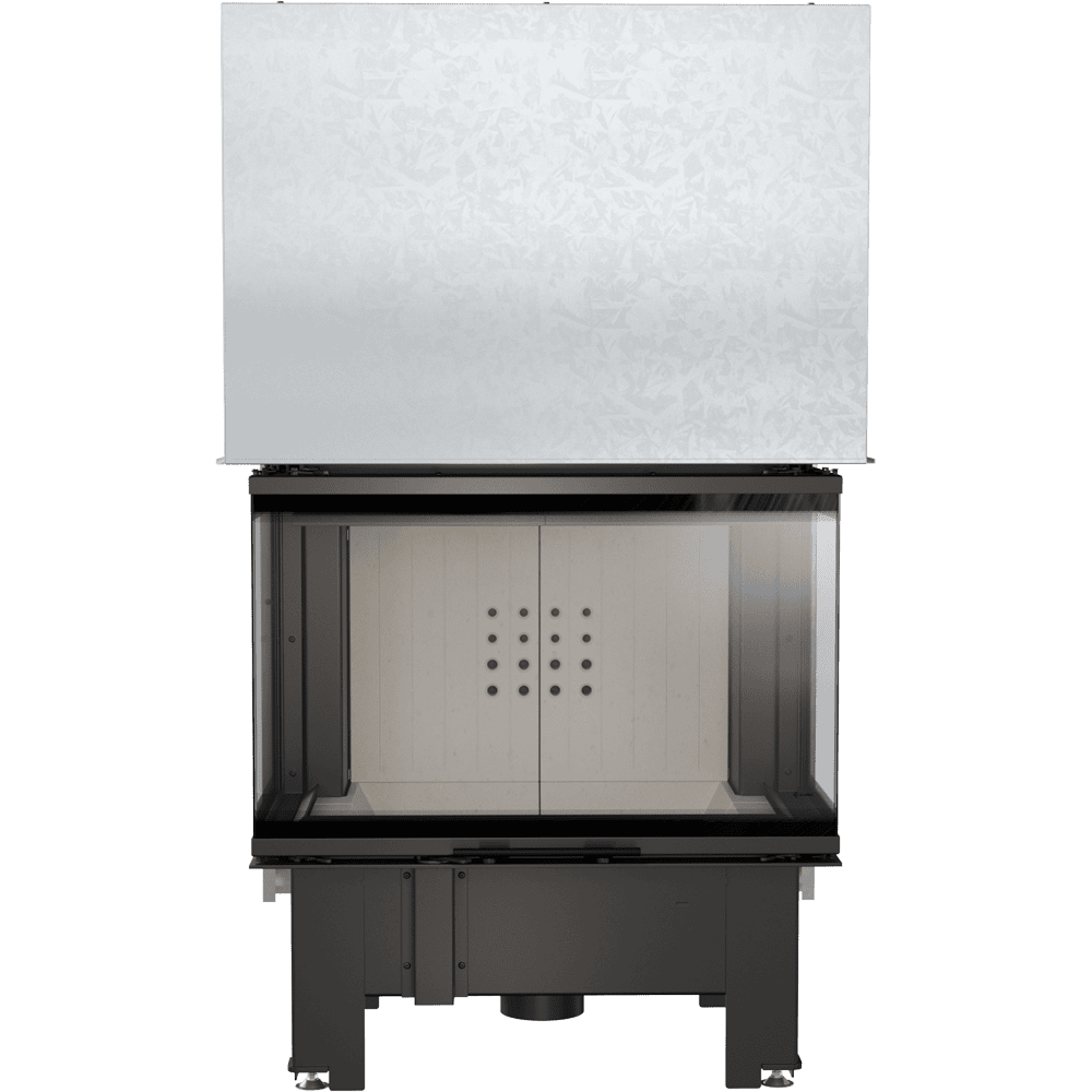 CONVENIENT TO USE - Movable grate and ashpan enables to clean the insert. The bottom plate of the insert is significantly reduced relative to the door. Double door opening system - lift up (Guillotine) and side opening. Lifted door makes loading of wood easier and machanism of side door opening allows to clean the glass. Reduced soot deposition through a system of pure glass (air curtain).