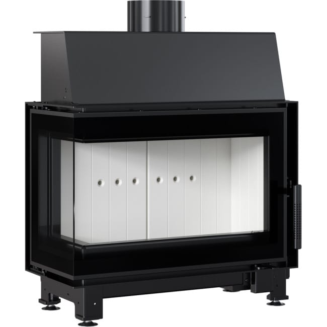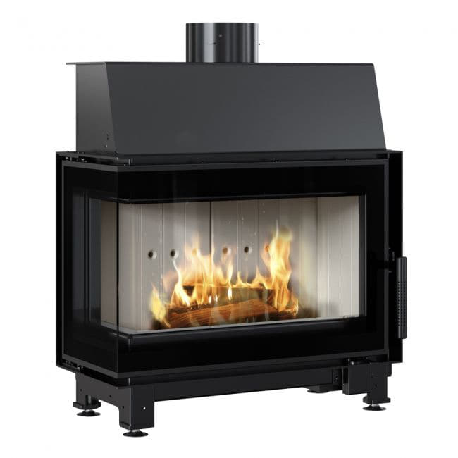 MODERN DESIGN - A fireplace stove with two panes at right angles to each other (panes joined together without a muntin bar). The decorative glass pane with a temperature of up to 660°C, which gives the fireplace a modern and elegant appearance, optically enlarges the front of the insert.