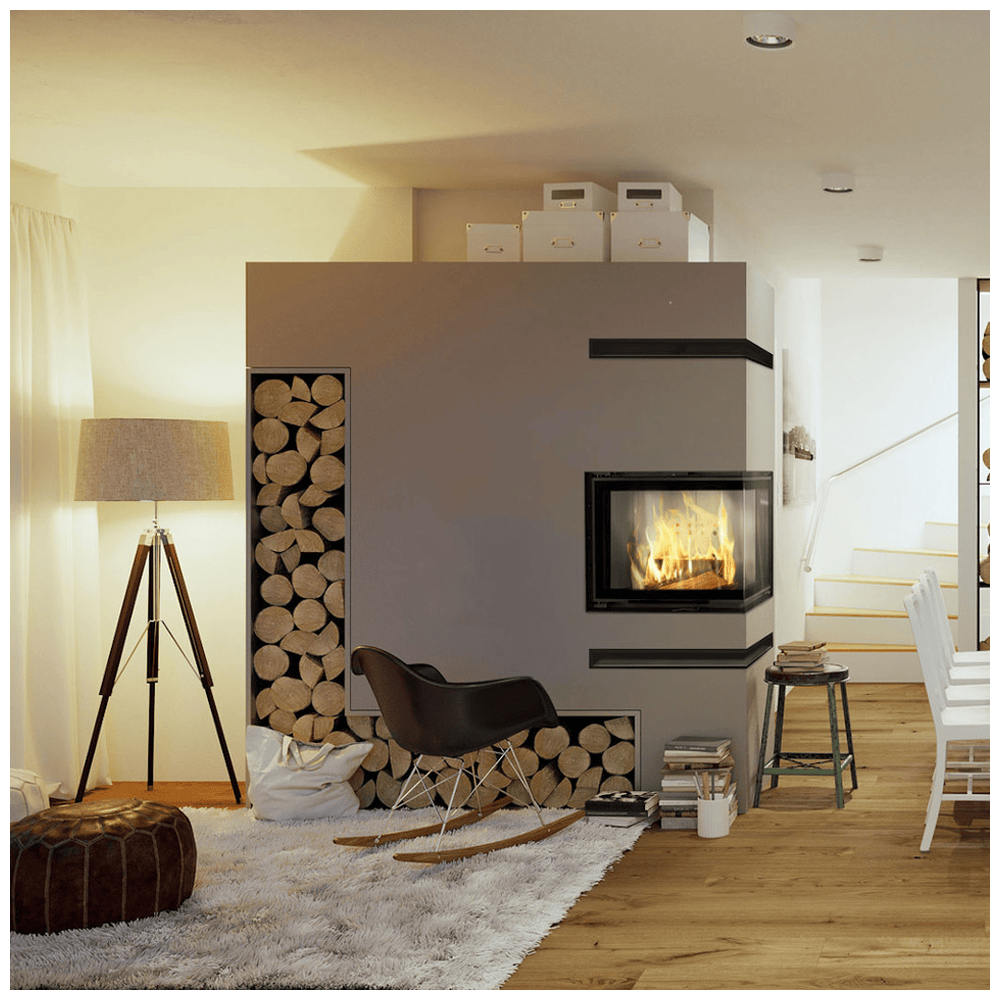 The modern VN insert the up-door version (guillotine - lift up system) with side glazing without a muntin combines unique aesthetics and exceptional performance properties. In addition to visual features, the device guarantees efficient space heating and ecological wood burning. Thanks to the use of modern materials and innovative technical solutions, it is characterized by a very subtle appearance. One of its many advantages is the possibility of connecting the air intake from the outside. The elegance of the insert is added by the decorative Glass type glazing. In addition, it has a parental lock that protects against uncontolled opening of the door.