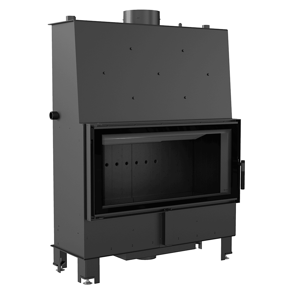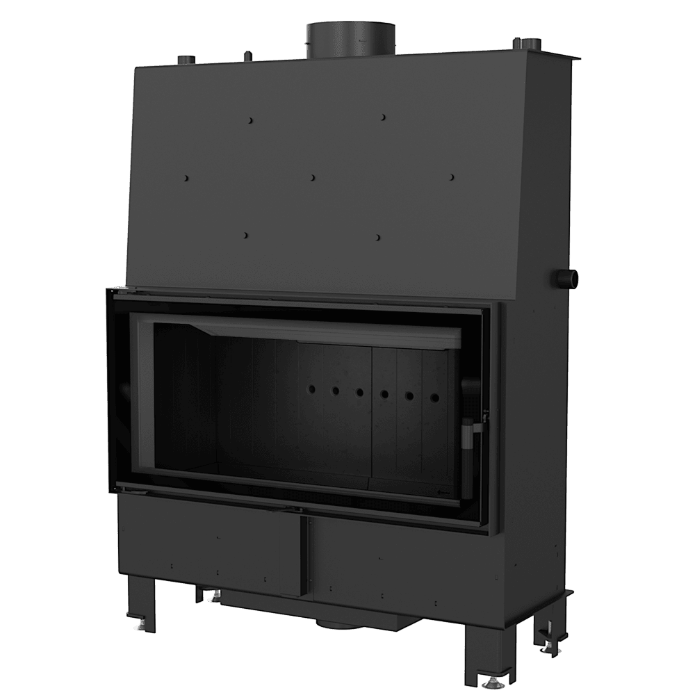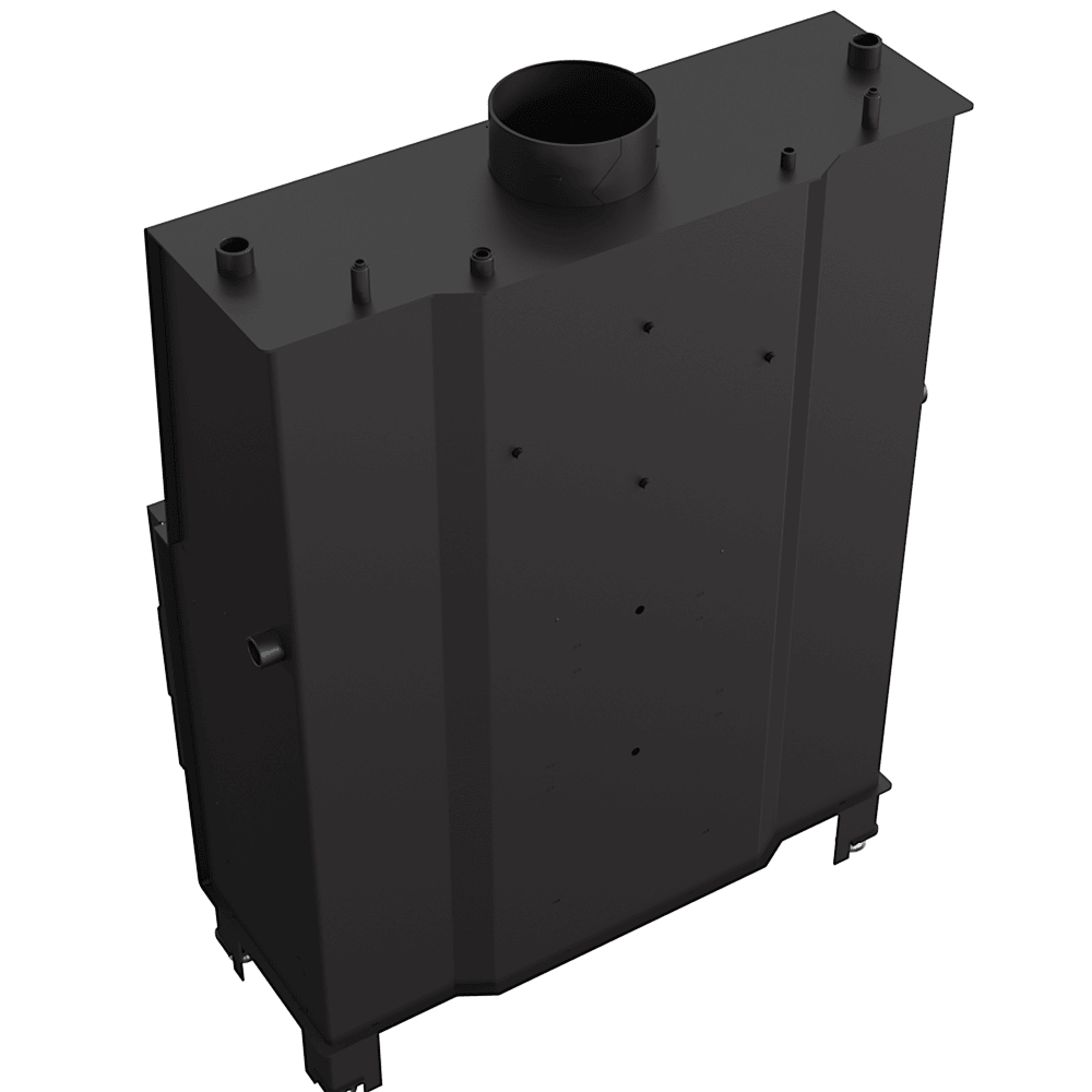 MAXIMUM USE OF ENERGY - The body and the front of the insert are resistant to high temperatures thanks to the high quality steel used in production. Special water system which allows that big amount of the heat from fumes is transferred into heating system, thanks to that high energy efficiency is obtained. Protection against overheating by the built-in coil pipe - connector input / output 1/2”. Efficient burning process & maintaining of temperature to keep the warmth for longer thanks to lining of combustion chamber with TERMOTEC - heat accumulating material which raises the temperature in the combustion chamber. More ecological combustion thanks to double deflector system which extends the exhaust gas path. Air supplied from outside only thanks to biult-in an external air inlet fi 125mm. Air adjustment with just one regulator which prevents from improper usage. Triple system of combustion chamber`s air venting: primary air - secondary air supplied under the grate through holes in a back wall. Additionally clean glass system designed (air curtain).