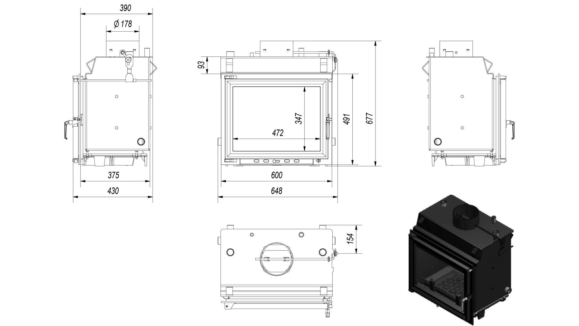 CONVENIENT TO USE - Classic front of insert is equipped with a heat-resistant ceramics that can withstand temperatures up to 660°C. The cold handle system which limits the risk of burns due to the possibility of removing it while burning. Decorative fence helps to maintain the tidiness and protects against falling out of wood. Movable grate and ashpan enables to clean the insert. 5 year warranty.