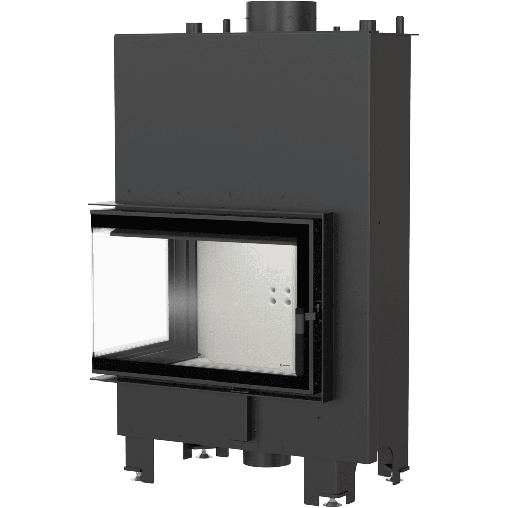MAXIMUM ENERGY USE - More efficient burning process and maintaining temperature to keep the warmth for longer, thanks to the lining of combustion chamber with TERMOTEC - a heat absorbing material that increases the temperature in the combustion chamber. Afterburning of fuel particles thanks to two deflectors which extend the exhaust path. This process increases the efficiency of burning and guarantees better use of energy. It also minimizes the emission of harmful substances to the atmosphere. Air supply to the insert comes only from outside, thanks to the built-in air intake connector fi 125 mm. It is controlled by an adjustable throttle with one adjuster below the door. This solution excludes errors of improper use. The whole failure-free mechanism works very quietly. There is a triple air system of combustion chamber in the insert. Primary air, which facilitates the firing of wood, is provided over the entire width of the burning plate insert, on which the whole process of burning takes place. Non-grate insert offers so-called phenomenon of afterburning of the ashes. Secondary air - providing economical and ecological combustion - is supplied by a system of holes located in the back wall. In addition, there is a system of clean glass system (air curtain), that means, the air is delivered directly to the glass through channel system located on the sides of the fireplace. In this way air is supplied to the upper part of the combustion chamber, which burns the gases produced by the wood combustion process, which further limits the emission of CO to the atmosphere. Use of such venting system allows to precisely control the combustion process. Special unit containing water jacket and horizontally stacked flame tube, through which water flows, allows to gather heat from the flue gases and transfer them to heating system for high energy efficiency. In addition, the device has a built-in coil pipe to protect it from overheating. Water jacket body is reinforced with pins. Input / output connector to the system - 1 inch, and to the coil pippe ½ inch. Sturdy and durable to tension fire doors are made of closed profile. The door gasket is in a profiled channel, which guarantees its proper adhesion and prevents it from falling out during operation.