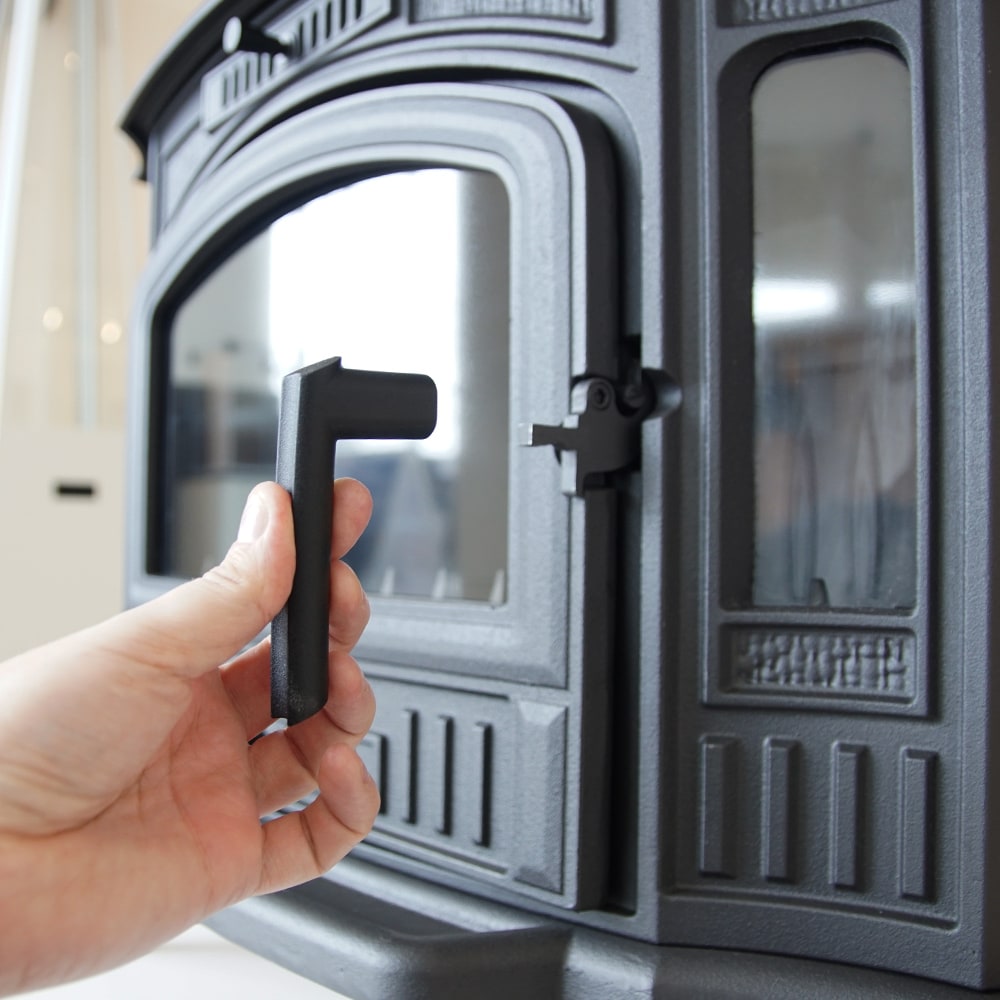 CONVENIENT TO USE - The cold handle system allows to disassembly it when the stove is in use. Ash drawer / ashtray, where the remains of burnt wood are gathered and grate for easy ash removal. Reduced soot deposition through a system of pure glass (air curtain). The possibility of different assembly, thanks to the adjustable outlet of flue gas from the back or top of the stove.